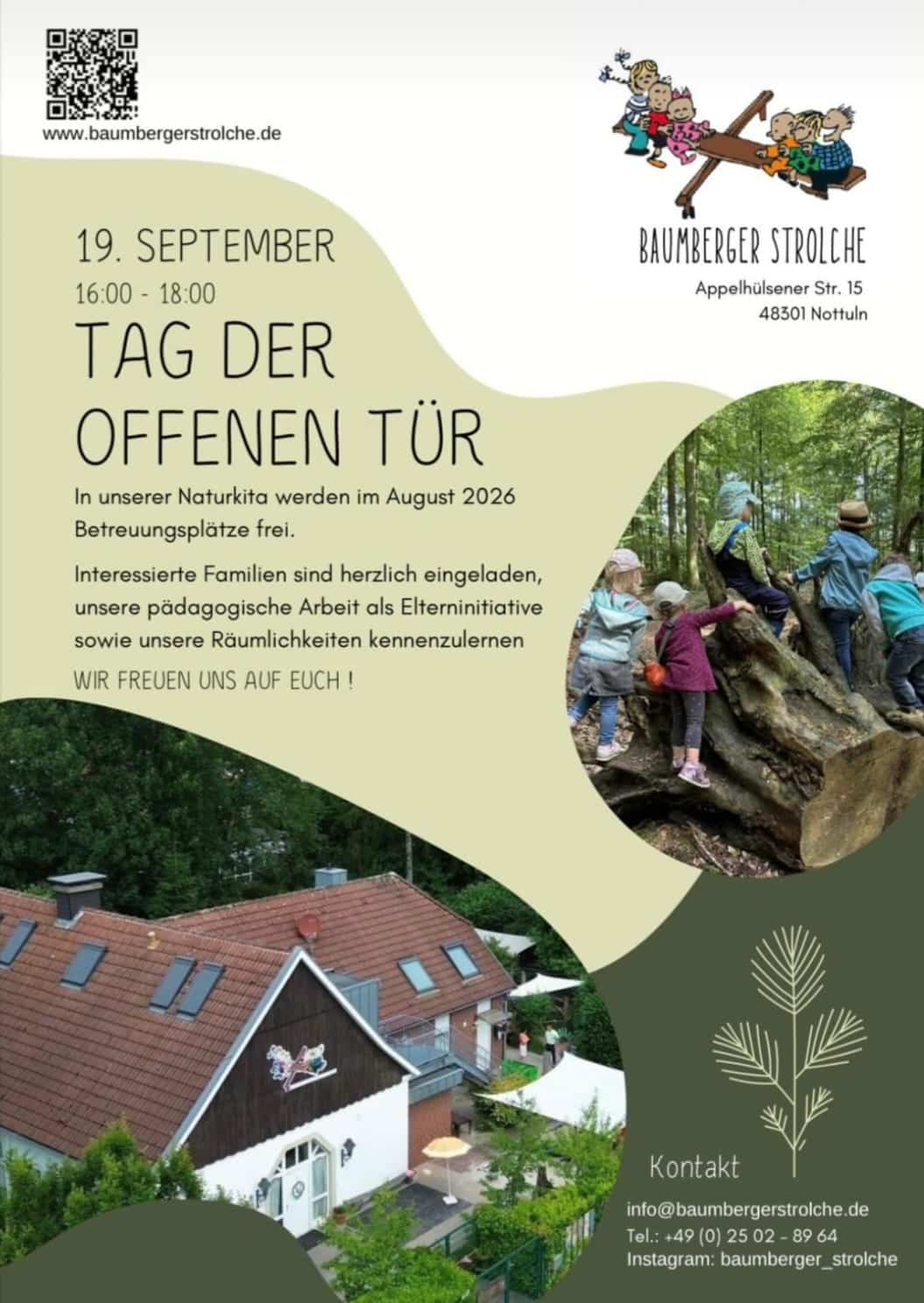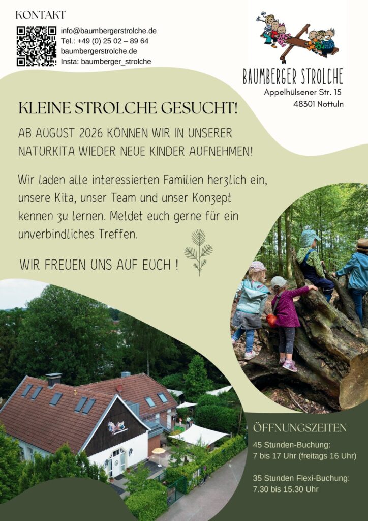 Wir sind eine naturnahe familiäre Kita im Herzen von Nottuln! Rund 30 Kinder ab 4 Monaten werden in unserem historischen Gemäuer mit verwunschenem Abenteuer-Garten von unserem liebevollen Team beim Großwerden begleitet.